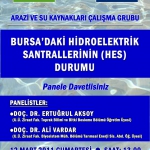 Bursa Kent Konseyi Arazi ve Su Kaynakları Çalışma Grubu Bursa'daki Hidroelektrik Santrallerinin (HES) Durumu Konulu Panele Davetlisiniz Tarih: 12 Mart 2011 - Cumartesi Saat: 13.00 Yer: Merinos Başkanlık Salonu